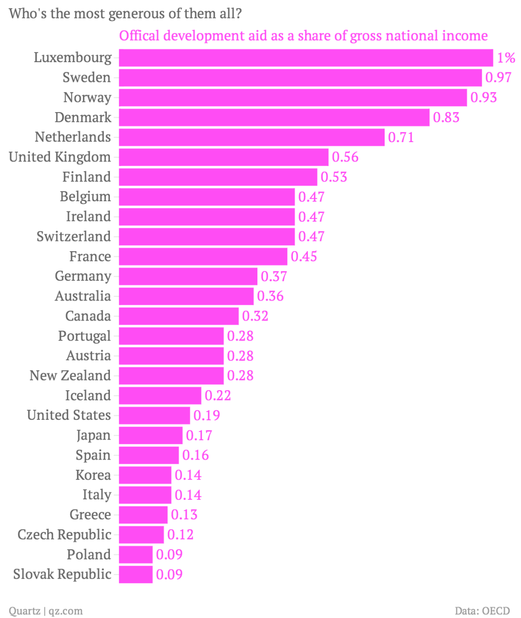 «Spain 0.16% de su Gross National Income». Con todos los chupacarteras que hay en el stablishment español normal que el estado suelte tan poca pasta. Además, yo incluiría a «South Spain» en el ranking de los países en vías de desarrollo, para ser justos jeje.