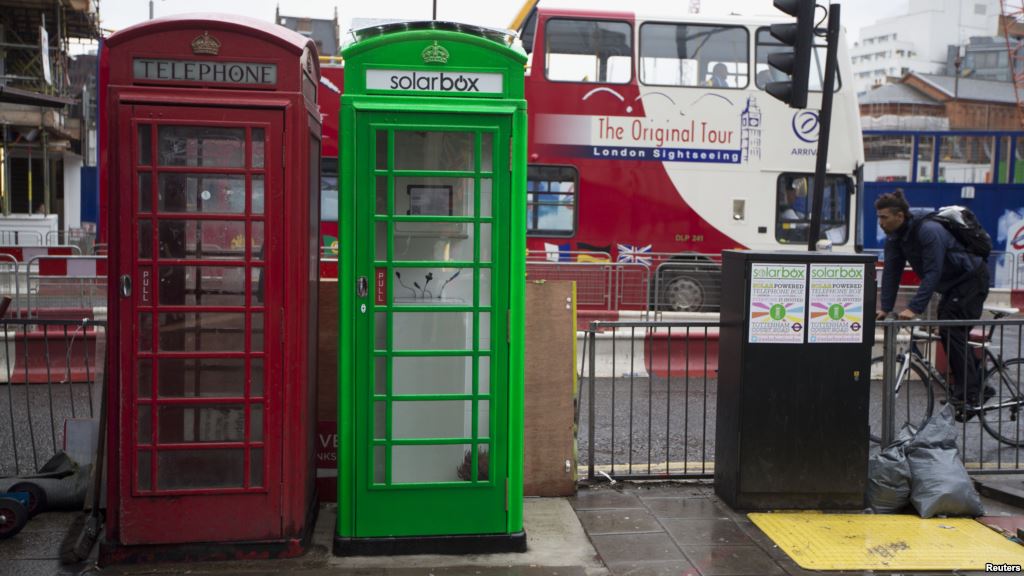 Desde London School of Economics, una de las escuelas de negocios más prestigiosas del mundo, un grupo de jóvenes quedaron en segunda posición gracias a su nueva visión de las cabinas telefónicas londinenses, que además de no utilizarse, están sucias, viejas, y puede que incluso den una mala imagen al turista y a la propia ciudad. Estos jóvenes propusieron instalar en estas cabinas unos paneles solares en el techo, que permitan cargar más de 100 móviles al día, de este modo se volverán a usar como un «elemento telefónico», igual que lo eran antes.