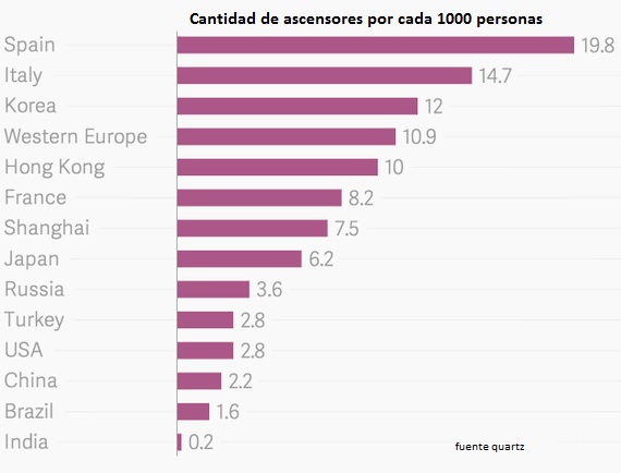 puede s er por tres razones , la primera ; somos demasiado comodones , la segunda ; hay mas edificios bastante altos que en otros paises , y la tercera ; la edad de los que suben por los ascensores …!!!