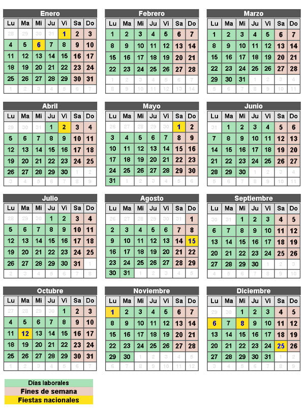 Sin embargo, podemos adelantarles los festivos nacionales, aunque es bueno aclarar que cada CC.AA. tiene la potestad de modificar ciertas fechas. Además existen otros festivos locales y regionales.