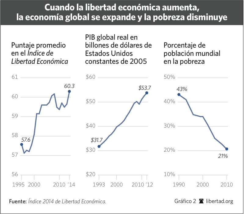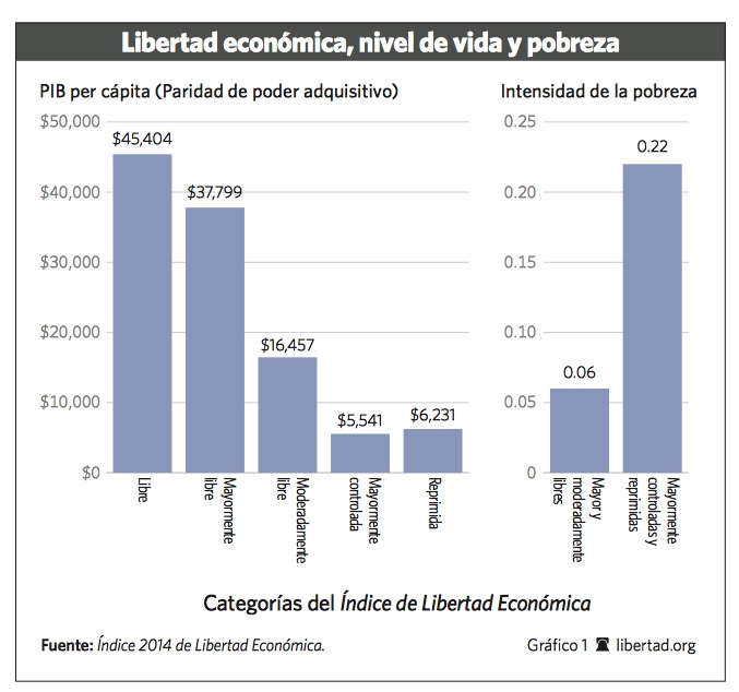 Desde hace 20 años, The Heritage Foundation junto con The Wall Street Journal, elaboran el Índice de Libertad Económica. Este índice compara la situación económica y social de todos los países del mundo. Su objetivo es ofrecer una visión clara sobre el éxito del sistema libre de mercado relacionado con la prosperidad y el desarrollo humano. La libertad económica es la variable más importante para el sostenimiento de la riqueza y la eliminación de la pobreza. La intensidad de la pobreza en los países que se consideran más libres es sólamente una cuarta parte , respecto a los países que se consideran menos libres.
