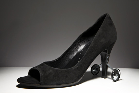 Pocas bromas en el paso del tacón medio al taconazo. Se supone que estos ruedines de apoyo sirven para mejorar el entrenamiento con los tacones altos, pero, a mi personalmente me da que no. En cualquier caso es un invento inútil pero divertido de contemplar.